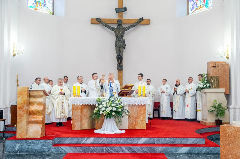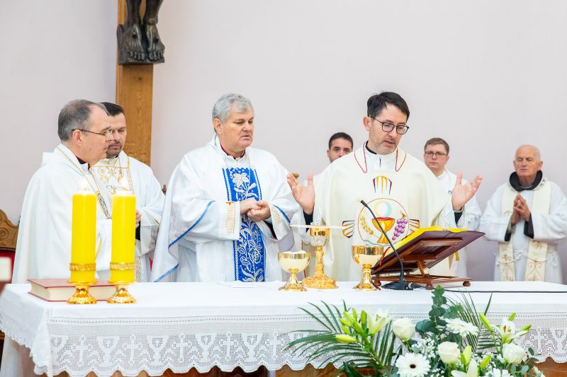 Misu zahvalnicu u župnoj crkvi sv. Lovre predvodio je biskup Košić u zajedništvu s biskupom Radošem, ravnateljem Hrvatskog Caritasa fra Tomislavom Glavnikom, domaćim župnikom Josipom Samaržijom i desetak svećenika