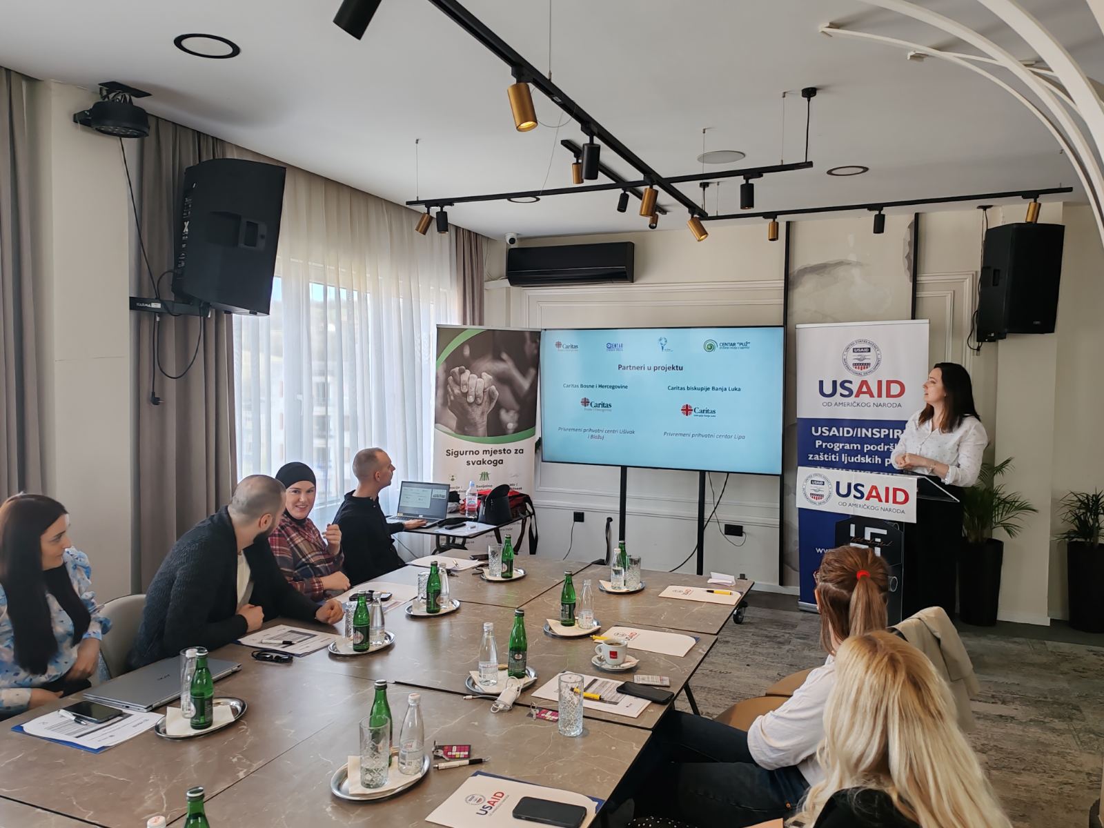 U ime programa Program podrške zaštiti ljudskih prava USAID Inspire, sudionicima se obratila gđa Dunja Jaliman, zamjenica direktora Programa USAID/INSPIRE koja je istaknula kako se kroz program od 2020. god. pruža potpora i unaprijeđenije sistema zaštite ljudskih prava i podrška marginaliziranim skupinama uključujući i 15 nevladinih organizacija koje djeluju na zaštiti potencijalnih žrtava trgovine ljudima i osobama u riziku od trgovine ljudima i osobe u pokretu kako na području Tuzlanskog kantona tako i u Privremeno prihvatnim centrima u Sarajevu i Bihaću.