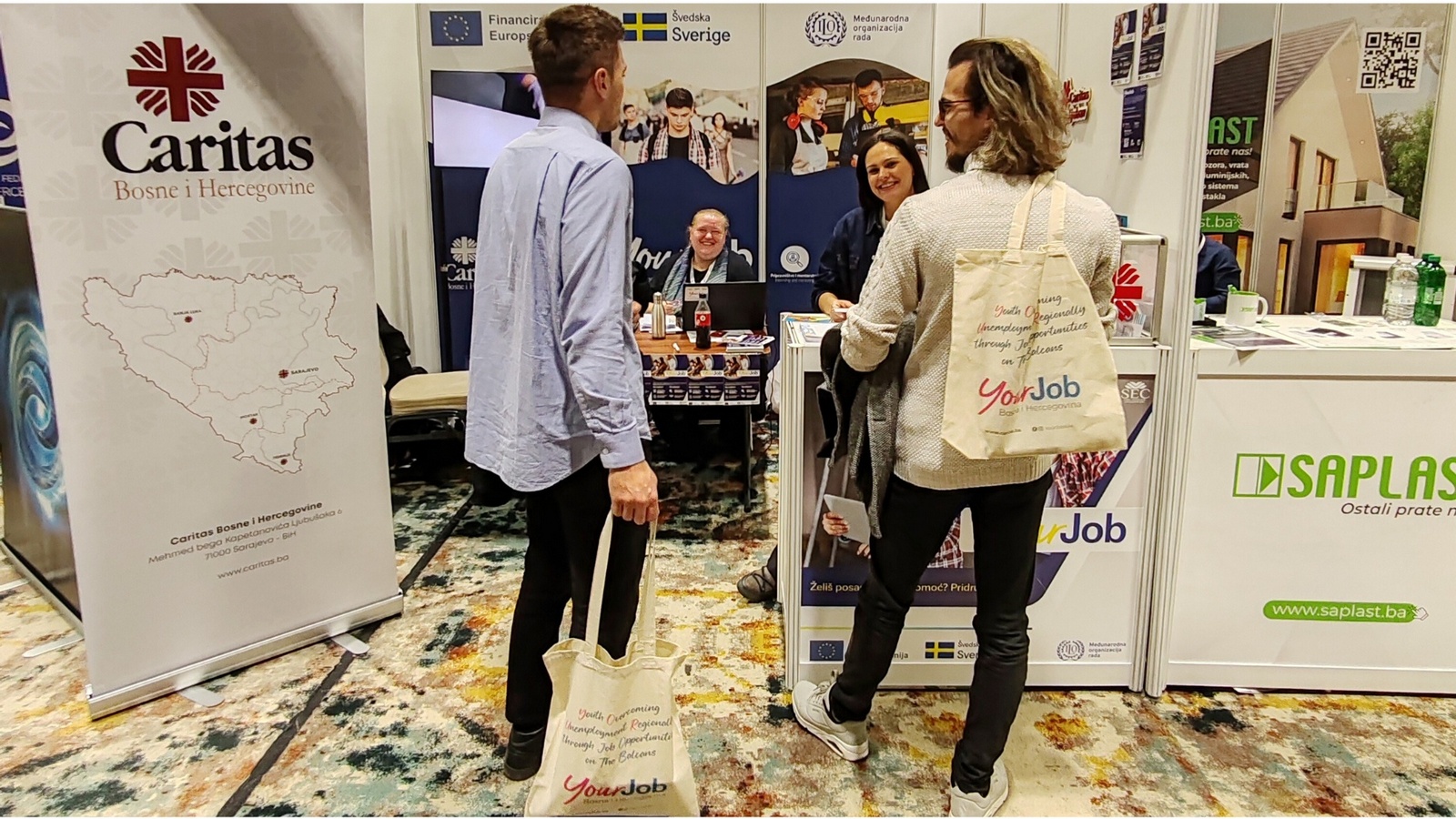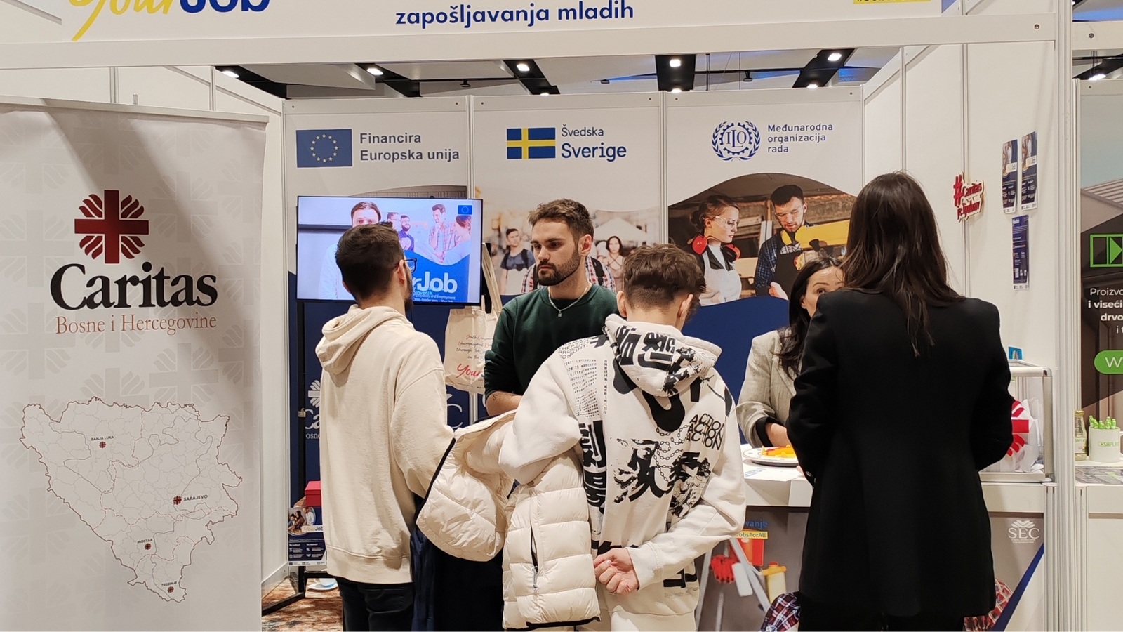 Tijekom dva dana sajma, savjetnici za zapošljavanje programa Your Job iz Caritasa BiH, gđa Sanja Horvat i gđa Ivona Vidačković, Caritasa biskupija Mostar-Duvno i Trebinje-Mrkan, gđa Danijela Čule, te Udruge Vedri osmijeh, gdin. Ivan Petrvović, predstavili su mladima usluge koje ovaj program nudi u Bosni i Hercegovini, s ciljem pružanja potpore mladima na njihovom putu prema zapošljavanju ili samozapošljavanju. Posjetitelji su bili u prigodi upoznati se s različitim mogućnostima, uključujući karijerno savjetovanje i vođenje kroz karijerni put, koji mladima pomaže u prepoznavanju njihovih vještina, interesa i potencijalnih karijernih opcija. Također, prezentirane su raznovrsne obuke, kao što su treninzi za razvoj mekih vještina (soft skills) i strukovne obuke, koje su ključne za jačanje kompetencija mladih na tržištu rada. Mladi su posebno pokazali interes za mogućnosti spajanja s poslodavcima, kao i za obuke koje omogućuju daljnji profesionalni razvoj. Savjetnici su posebice prezentirali i program samozapošljavanja, koji mladima omogućava da razviju vlastite poslovne ideje i započnu vlastiti biznis te su podijelili inspirativne priče mladih poduzetnika koji su, zahvaljujući podršci programa Your Job, uspješno pokrenuli svoje poslovanje.