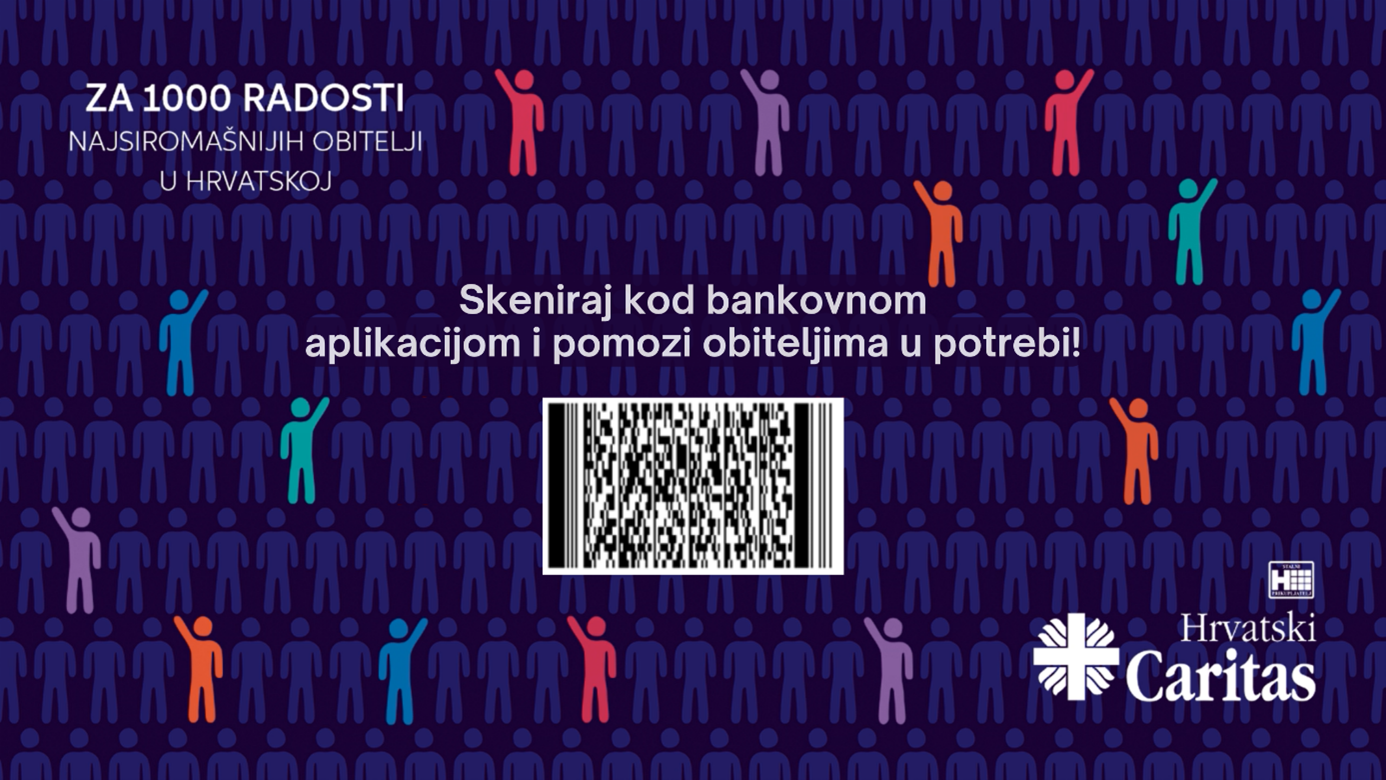 Program „Za 1000 radosti“ Hrvatskog Caritas cjelogodišnji je program pomoć obiteljima u potrebi na području čitave Hrvatske, a uključiti se može: