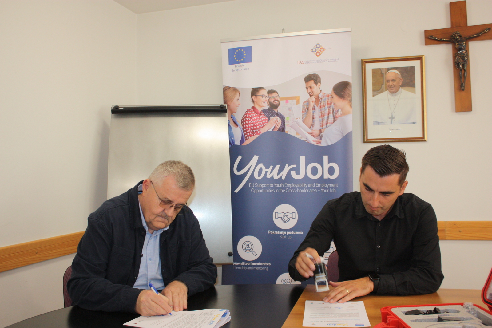 Europska unija kroz IPA II Program prekogranične suradnje BiH - Crna Gora financira projekt „Your Job“ s oko 360,000 eura bespovratnih sredstava. Provodi ga Caritas Bosne i Hercegovine, s partnerima: Fondacija Mozaik i Udruženje za razvoj kompetencija „S.K.I.L.L.S.“ iz Sarajeva (BiH), kao i s Caritasom Barske nadbiskupije i Biznis start centrom Bar (CG). (caritas.ba)