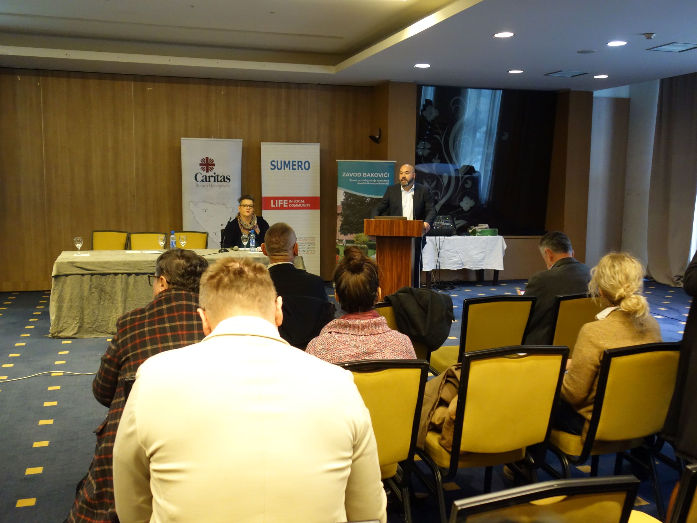 U uvodnom dijelu konferencije nazočnima su se obratili mons. Tomo Knežević, ravnatelj Caritasa BiH, gosp. Haris Haverić, direktor Sumera i gosp. Branko Stanić, ravnatelj Zavoda Bakovići. U radnom dijelu konferencije gosp. Nermin Cocalić je prezentirao model stanovanja u zajednici uz potporu, a kojeg Savezom Sumero provodi na području Federacije BiH prvenstveno za osobe s intelektualnim teškoćama.