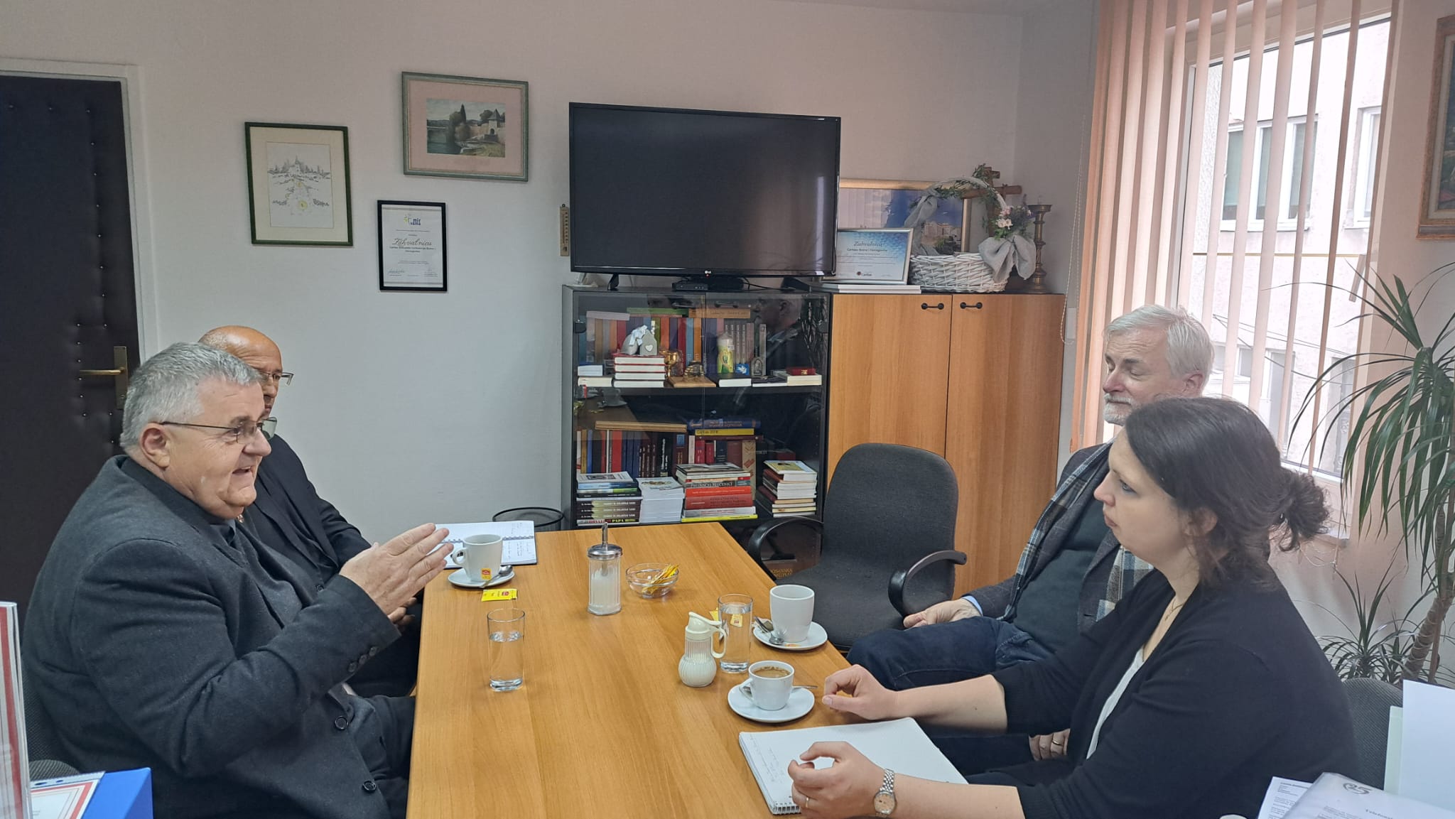 Ravnatelj Caritasa Bosne i Hercegovine mons. Tomo Knežević susreo se u četvrtak, 18. travnja 2024. godine, u Središnjici Caritasa Bosne i Hercegovine s predstavnicima Agencije njemačkih katolika za međunarodnu suradnju - AGIAMONDO. Predstavnici AGIAMONDO-a bili su gđa Irene Mukasa-Erben i gosp. Tilo Krausse, a susretu su nazočili prof. dr. sc. Darko Tomašević s Katoličkog bogoslovnog fakulteta u Sarajevu i djelatnik Caritasa BiH gosp. Miroslav Valenta.