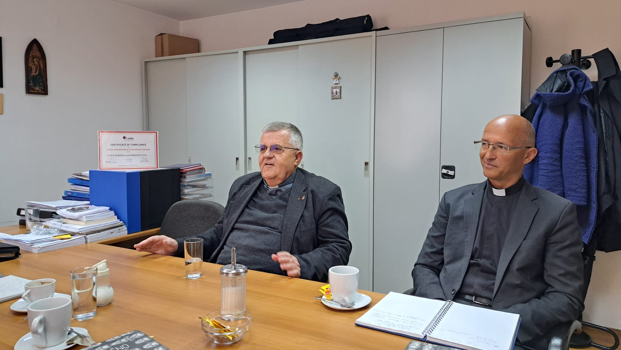 Na kraju razgovora, mons. Knežević je pozdravio sve napore Agencije njemačkih katolika za međunarodnu suradnju - AGIAMONDO, te istaknuo kako u Caritasu Bosne i Hercegovine mogu imati kvalitetnog partnera sa značajnijim iskustvom u uspostavi novih programa i aktivnosti. Ovaj susret predstavlja početak nove suradnje između dvije organizacije koje dijele zajedničke vrijednosti i ciljeve. Obećava budućnost u kojoj će se, kroz zajedničke napore, nastaviti rad na izgradnji mira i pomirenja u Bosni i Hercegovini. (caritas.ba)