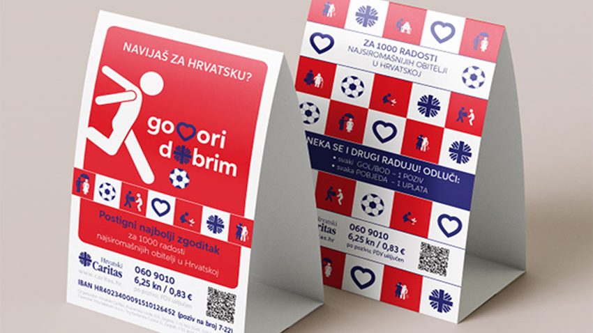 Hrvatski Caritas, u sklopu programa „Govori dobrim“, pokrenuo je akciju s ciljem pružanja potpore Hrvatskoj nogometnoj reprezentaciji i najsiromašnijim obiteljima. Poziv prenosimo u cijelosti.