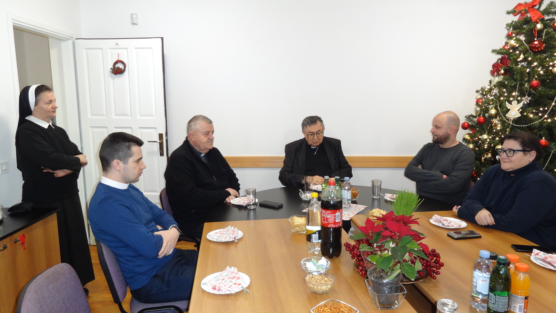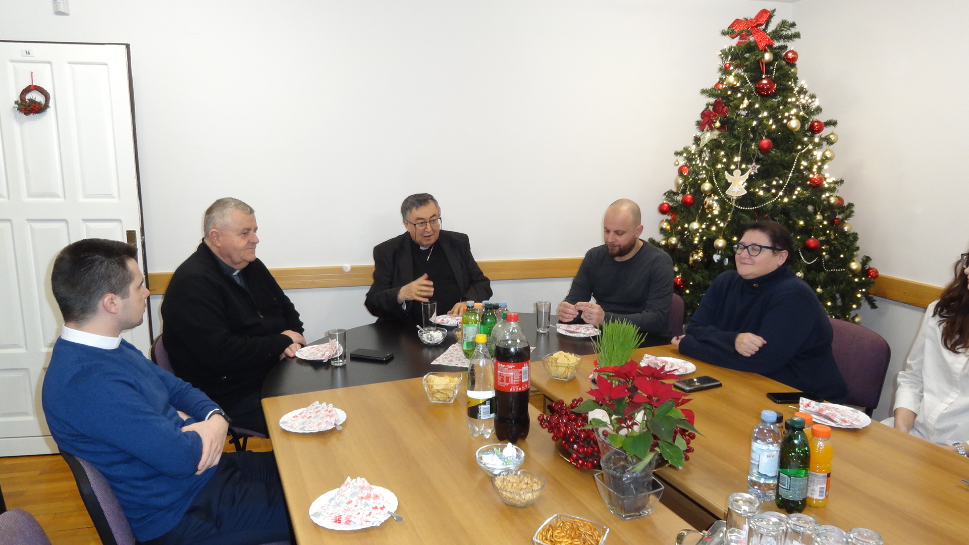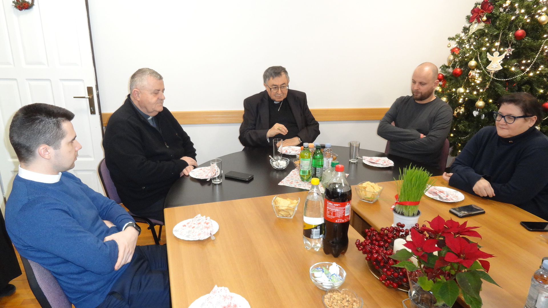Uz iskrene božićne i novogodišnje čestitke ravnatelj Caritasa BiH mons. Tomo Knežević izrekao je dobrodošlicu i zahvalu predsjedniku i svim djelatnicima Caritasa BiH za godinu koja je na izmaku. Kardinalu je ukratko predstavio aktivnosti i planove, te zamolio potporu za vrijeme koje slijedi. Kroz razgovor i predbožićnu kavu djelatnici su imali prilike glasno izreći svoja pitanja i svoja razmišljanja. Kardinal je u ime svoje i svih bosanskohercegovačkih nad/biskupa zahvalio svima i na svemu što čine kroz svoj svakodnevni život i rad u Caritasu Bosne i Hercegovine. Pozvao ih je da se ne umore u činjenju dobra iz vjere u Boga i iz ljubavi prema bližnjemu u nevolji, a na temelju osobne vjere i svjedočkog življenja. Ovo je bila prilika da se razmijene božićni i vjernički darovi. (caritas.ba)