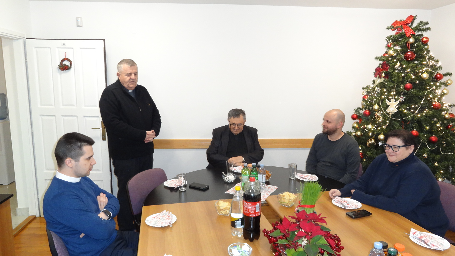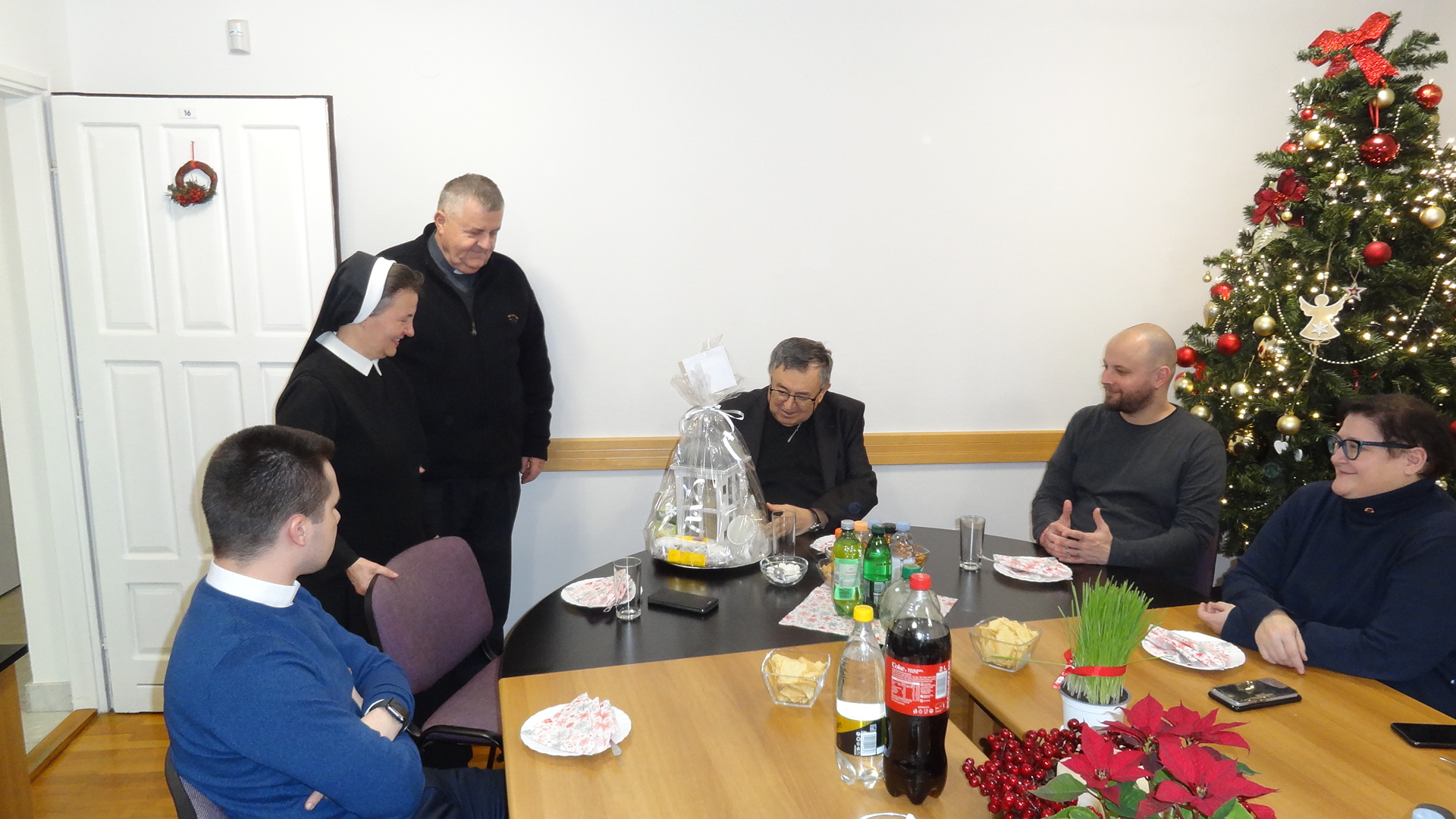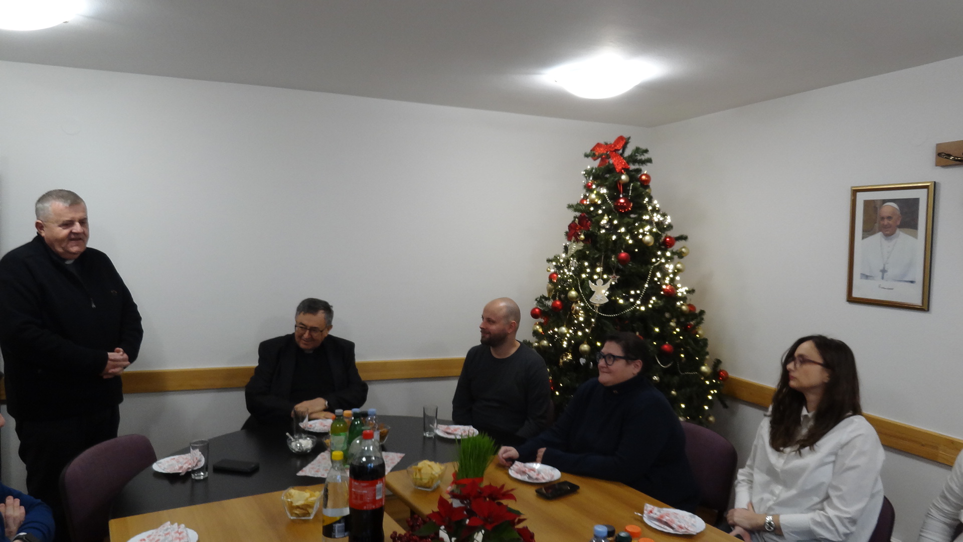Uz iskrene božićne i novogodišnje čestitke ravnatelj Caritasa BiH mons. Tomo Knežević izrekao je dobrodošlicu i zahvalu predsjedniku i svim djelatnicima Caritasa BiH za godinu koja je na izmaku. Kardinalu je ukratko predstavio aktivnosti i planove, te zamolio potporu za vrijeme koje slijedi. Kroz razgovor i predbožićnu kavu djelatnici su imali prilike glasno izreći svoja pitanja i svoja razmišljanja. Kardinal je u ime svoje i svih bosanskohercegovačkih nad/biskupa zahvalio svima i na svemu što čine kroz svoj svakodnevni život i rad u Caritasu Bosne i Hercegovine. Pozvao ih je da se ne umore u činjenju dobra iz vjere u Boga i iz ljubavi prema bližnjemu u nevolji, a na temelju osobne vjere i svjedočkog življenja. Ovo je bila prilika da se razmijene božićni i vjernički darovi. (caritas.ba)