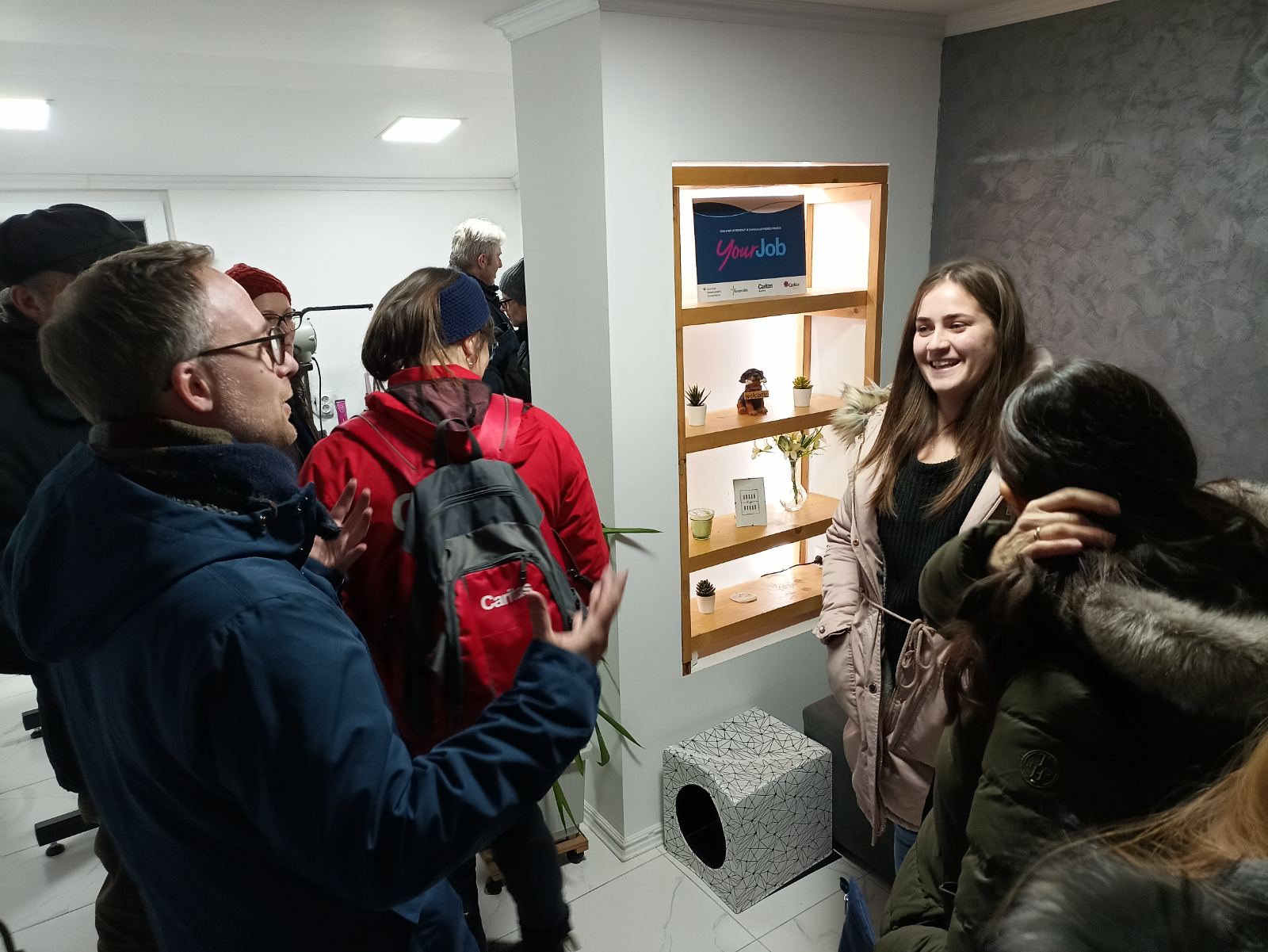 Posjet je nastavljen obilaskom ureda u Šidu, koji je otvorena s početkom druge faze projekta „Your Job“ također podržanog od strane Austrijskog Caritasa. Izaslanstvo su dočekali kordinatorica projekta Marina Kostić i karijerna savjetnica Sara Žurovski. Posjet se nastavio obilaskom Rume gdje su gosti iz Austrije imali priliku upoznati se s mladima koji su izabrani za dobitnike grantova za pokretanje vlastitog biznisa koji su dodijeljeni tijekom prve faze projekta “Your Job” 2019.-2022. godine. Obišli su i vrt rezanog cvijeća „Venerin vrt“ koji je otvorila mlada Branislava Skakavac, zatim Nikolinu Janković koja je također zahvaljujući podršci projekta otvorila frizersko-kozmetički salon i atelje ljepote „N-Divine“. Treća dobitnica granta koju je austrijsko izaslanstvo posjetilo u tijeku boravaka u Rumi bila je Željana Mojsilović koja je uz pomoć dodijeljenog granta otvorila Salon za njegu i uljepšavanje kućnih ljubimaca „Kuća Šapa“. Prilikom posjeta mladih koji su zahvaljujući projektu „Your Job“ započeli svoje biznise, gosti iz Austrije imali su priliku uvjeriti se u uspješnost i rezultate prve faze projekta koji se ove godine nastavlja na novoj lokaciji u Šidu. (caritas.ba/ika)