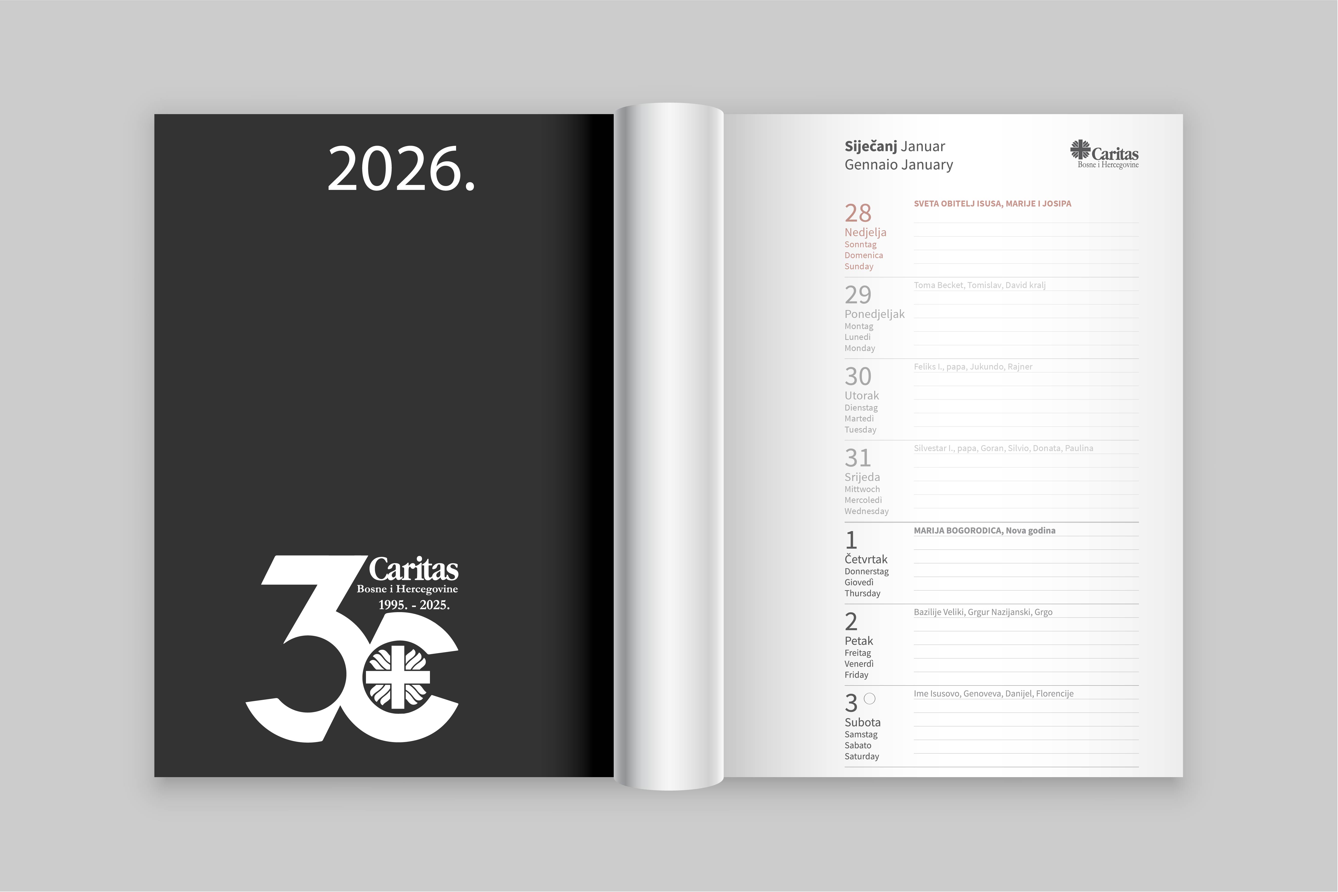Ovih dana iz tiska je izišao rokovnik Caritasa Bosne i Hercegovine za 2026. godinu. Caritas BiH od 2016. godine priprema i tiska spomenuti rokovnik za brojne prijatelje i dobročinitelje kako u tuzemstvu tako i u inozemstvu. Čini to u godini obilježavanja 30. obljetnice od njegova utemeljenja.