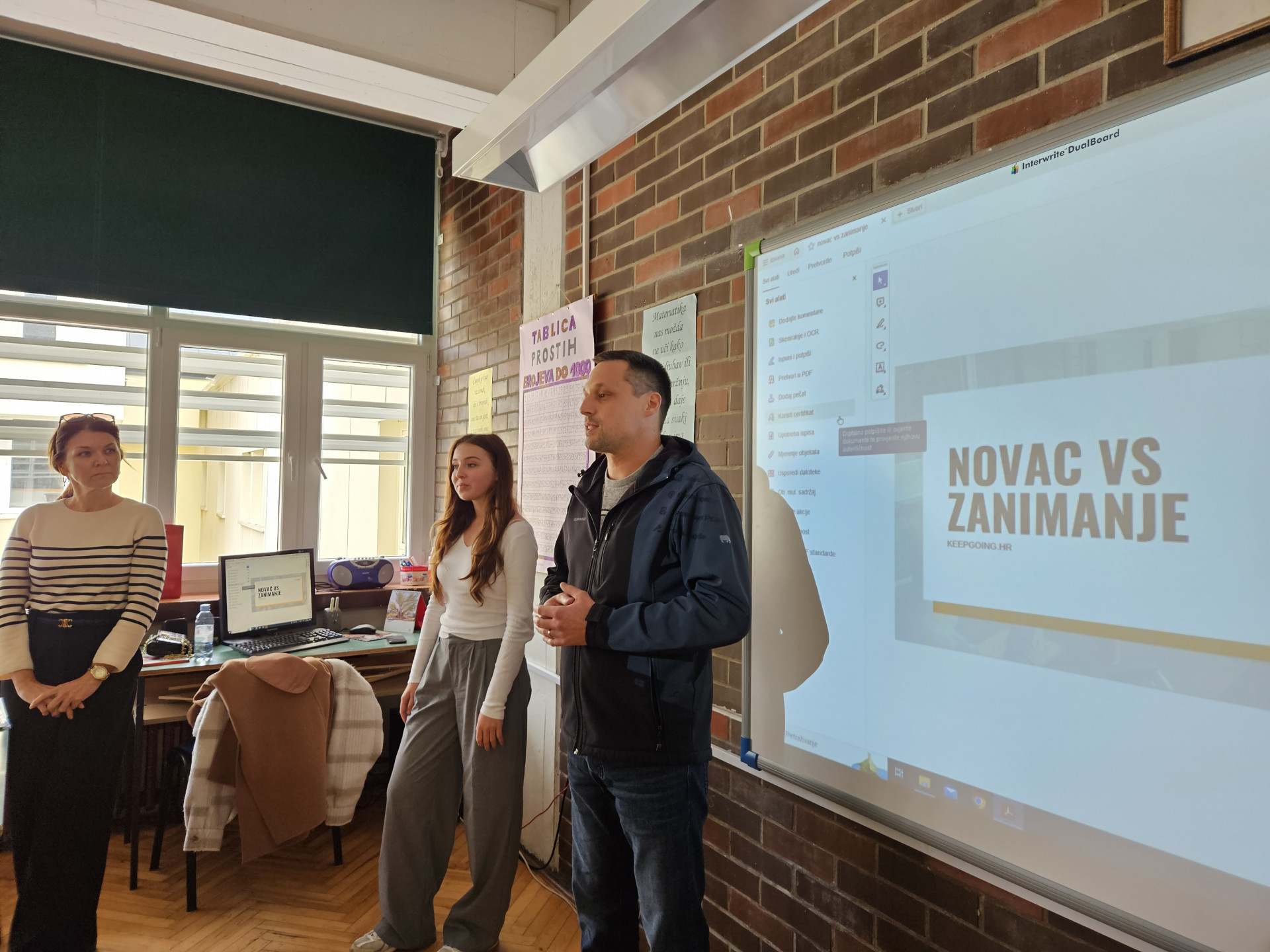 Radionicu su osmom razredu pod naslovom „NOVAC vs ZANIMANJE“ održale Katarina Braovac, mr. sc. oec., te studentica Ekonomskog fakulteta Sveučilišta u Zagrebu Helena Braovac.