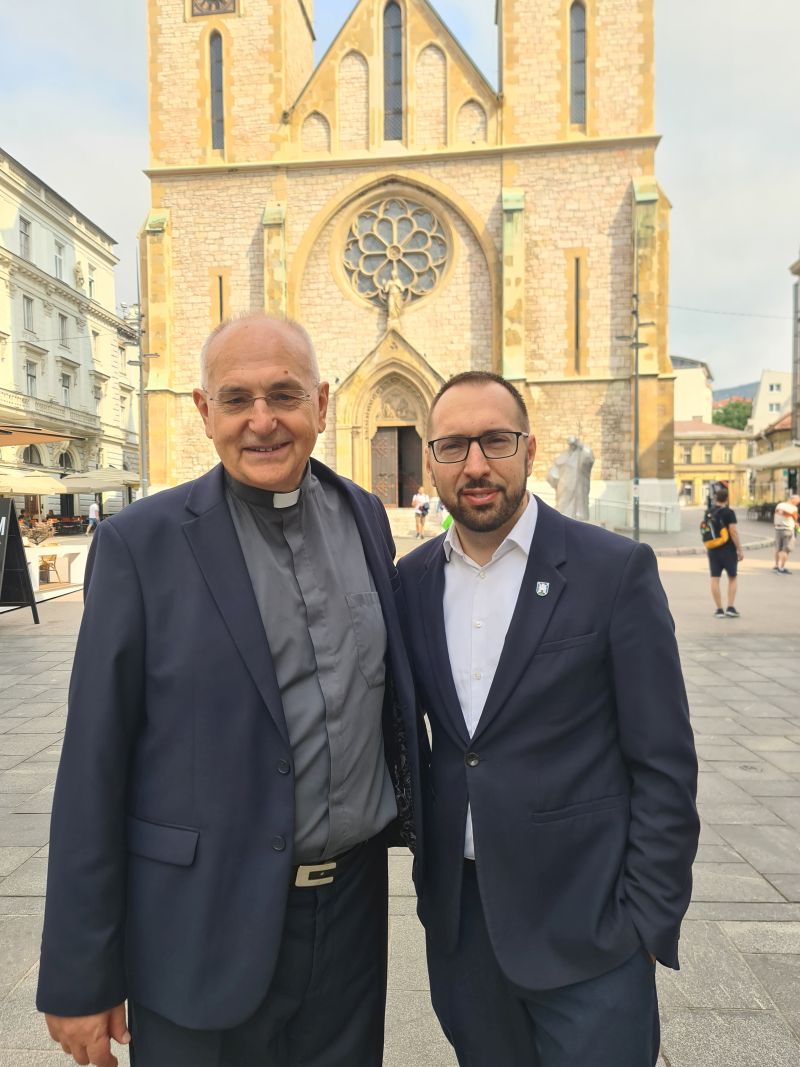 Mons. Ivo Tomašević pokazao je gradonačelniku Tomislavu sarajevsku katedralu Srca Isusova i grob sluge Božjega Josipa Stadlera, prvog vrhbosanskog nadbiskupa i utemeljitelja družbe sestara Služavki Malog Isusa. Nadbiskup Stadler je rođen u Slavonskom Brodu, a bio je svećenik Zagrebačke nadbiskupije i profesor u glavnom radu Hrvatske. Razgovarali su i o stanju Crkve odnosno katolika u Bosni i Hercegovini, Vrhbosanskoj nadbiskupiji i gradu Sarajevu te o aktualnoj situaciji u Bosni i Hercegovini. (caritas.ba/kta)