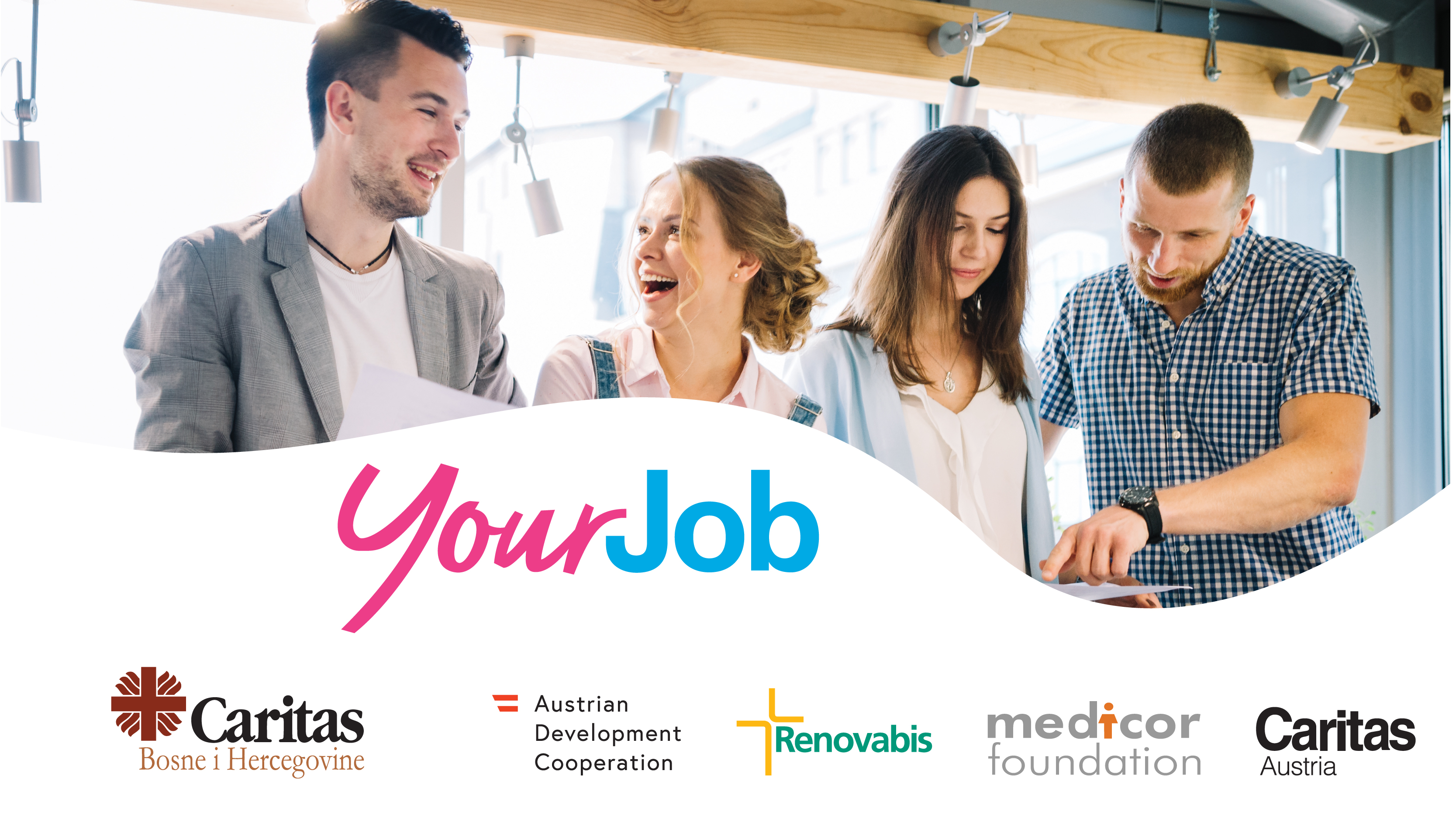 Caritas BiH u suradnji s Caritasom Austrije nastoji doprinijeti smanjenju siromaštva među mladima poticanjem zapošljavanja, izobrazbom i razvojem socijalnog poduzetništva za mlade. Utemeljen na istraživanju o uzrocima nezaposlenosti mladih koje je provedeno u 2018. god., program YourJob od 2019. god. konkretnim aktivnostima povećava konkurentnost mladih na tržištu rada i utječe na smanjenje nezaposlenosti mladih. Program se provodi u 14 gradova i općina u Albaniji, Bosni i Hercegovini, Kosovu i Srbiji.
