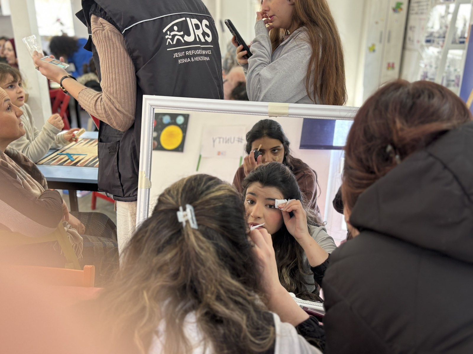 Društveni kutak na kratko se transformirao u pravi kozmetički salon! U sklopu organiziranih radionica uljepšavanja, korisnice su imale priliku dotjerati svoje frizure, osvežiti šminku te isprobati umjetnost oslikavanja kanom – drevnu tehniku tradicionalnog ukrašavanja tijela. Kao poseban znak pažnje, na kraju događaja uručen im je i simboličan poklon, čime je ova jedinstvena radionica završena u duhu zahvalnosti i lijepih uspomena.