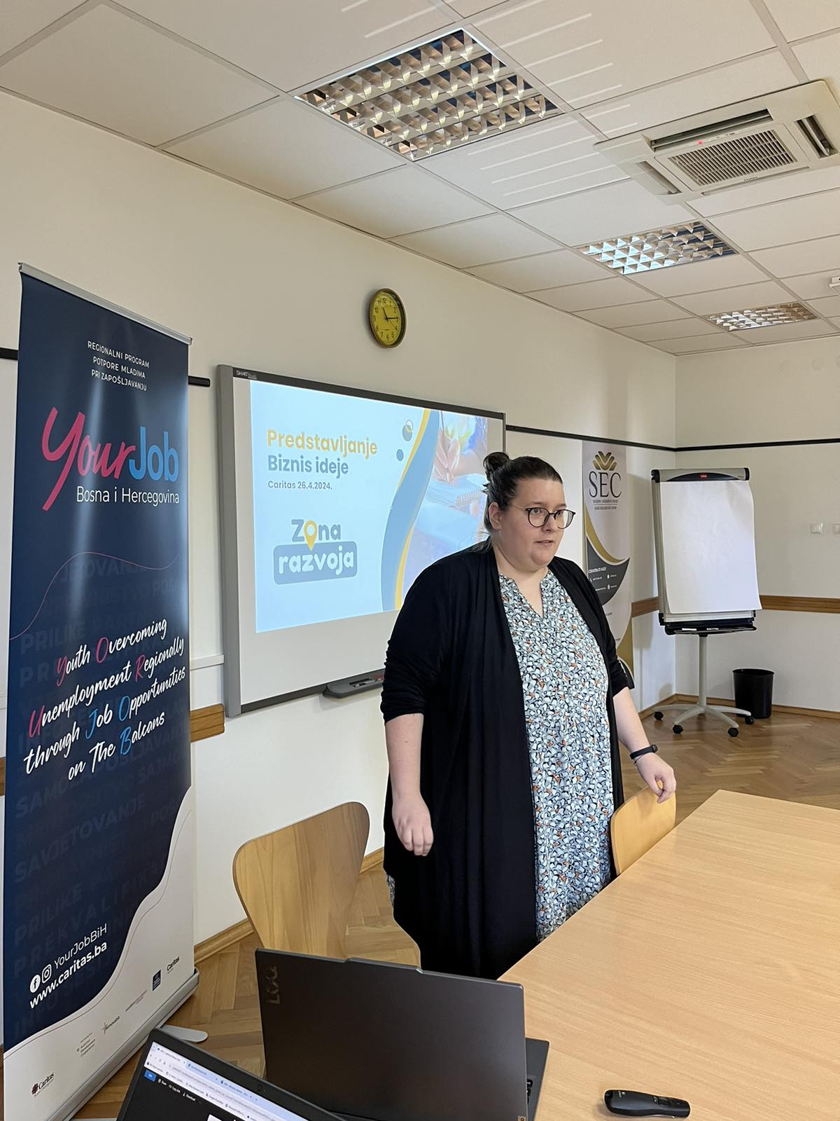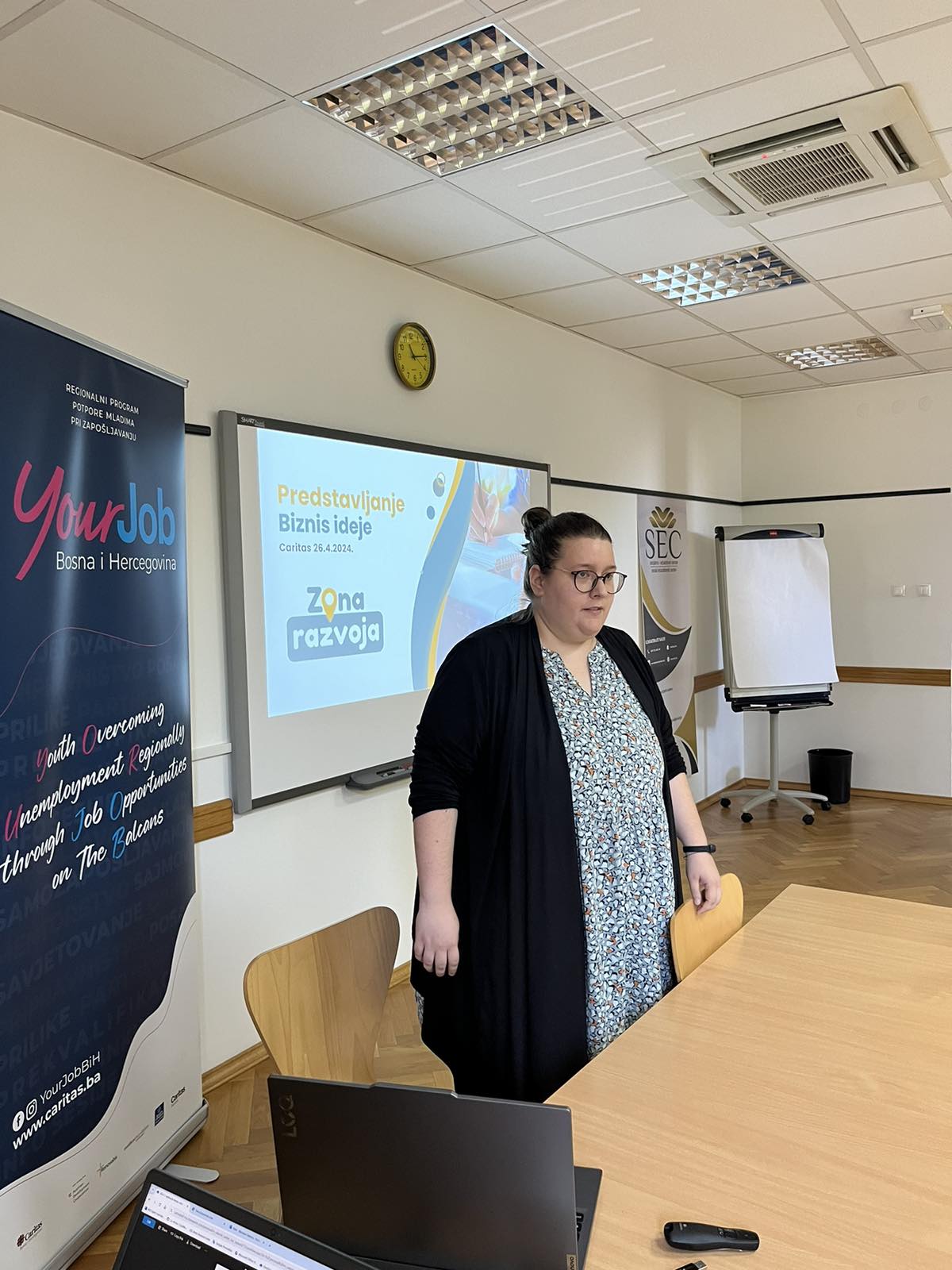 Jovana Mačkić, sa poslovnom idejom za proizvodnju edukativnih igračaka koje podupiru rani razvoj djeteta, osiguravajući kvalitetu i sigurno učenje kroz igru, podijelila je: “Imala sam čast prva prezentirati svoju ideju. S velikim entuzijazmom sam predstavila svoje zamisli za brend Maca i lane, uzbuđena zbog mogućnosti koje YourJob i Caritas nude. Veoma sam zadovoljna kako je prošla prezentacija”.