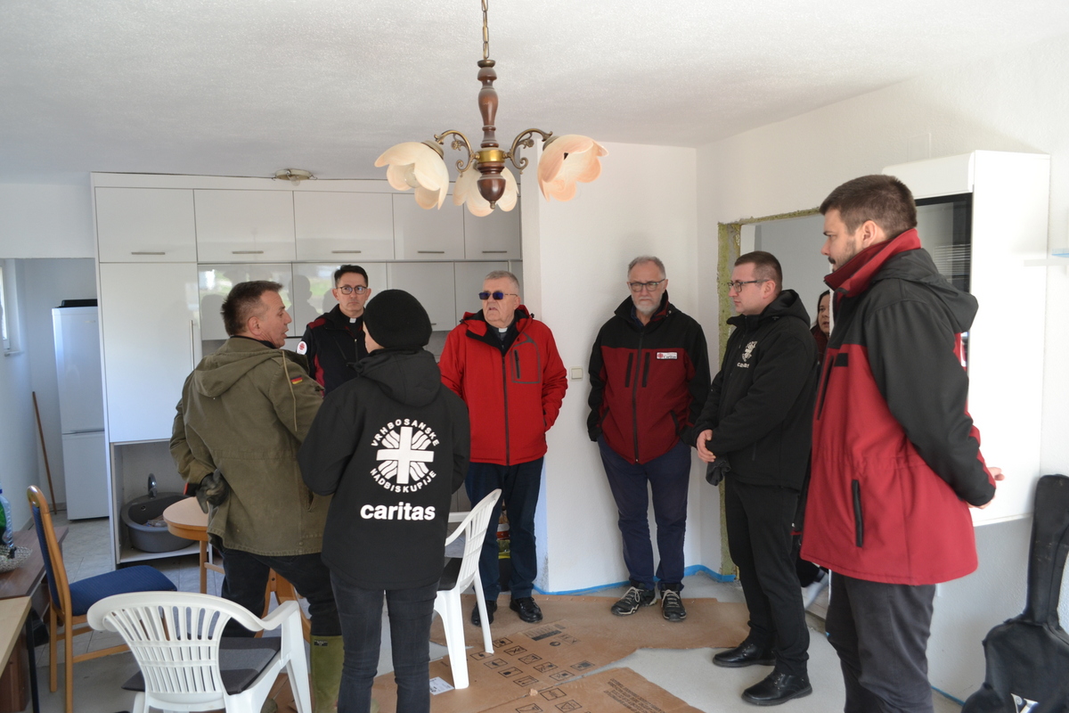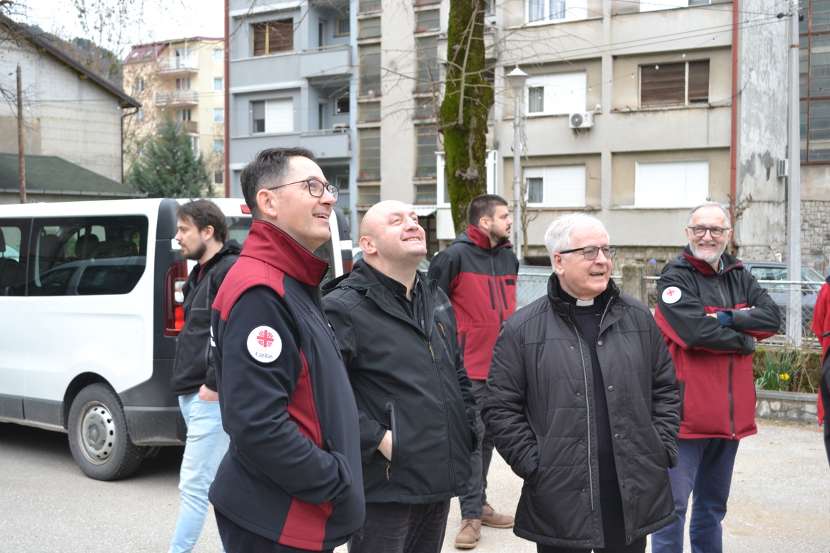 Tročlanu delegaciju Hrvatskog Caritasa činili su: ravnatelj fra Tomislav Glavnik, zamjenik ravnatelja gosp. Boris Peterlin i voditelj posebnih projekata gosp. Filip Naglić. Goste iz Hrvatskog Caritasa primio je i cijelo vrijeme pratio ravnatelj Caritasa Bosne i Hercegovine mons. Tomo Knežević sa suradnicima odgovornim za provedbu projekta pomoći stradalima od listopadskih poplava: koordinator za žurno djelovanje gosp. Miroslav Valenta i voditelj financija i interni revizor gosp. Daniel Eror. Već u nedjelju, 16. ožujka 2025. godine, delegacije oba nacionalna Caritasa primio je predsjednik Biskupske konferencije BiH vrhbosanski nadbiskup metropolit i predsjednik Caritasa BiH mons. dr. sc. Tomo Vukšić. Bila je to prilika za razgovor o provedbi akcije pomoći stradalima od poplava i o drugim aktualnim projektima i pomoći koju pruža i ostvaruje Hrvatski Caritasa bilo preko nacionalnog Caritasa BiH bilo preko nad/biskupijskih Caritasa u BiH ili o drugim vidovima pomoći pojedincima ili pravnim subjektima na bosanskohercegovačkim prostorima. Ostatak dana bilo je vrijeme za susrete i razgovore delegacija dvaju nacionalnih Caritasa: Caritasa BiH i Hrvatskog Caritasa. Brojne su aktivnosti koje zajedničkim snagama i u uzajamnoj pomoći provode na dobro čovjeka u nevolji na prostorima svoga djelovanja.