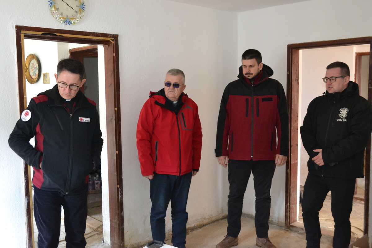 Kako je vrijeme odmicalo, planirana i ostvarivana realizacija uz sve prisutne poteškoće i razmišljanja, prije skoro dva mjeseca iz Hrvatskog Caritasa stigla je najava o terenskoj posjeti i obilaska poplavljenog područja tročlane delegacije Hrvatskog Caritasa uz susret i razgovor s predsjednikom Caritasa BiH mons. dr. sc. Tomom Vukšićem. Zatim je slijedio obilazak terena i u konkretnoj komunikaciji s nacionalnim i s dva nad/biskupijska Caritasa u BiH, sastanke i susrete sa svećenicima koji pastoralno djeluju na tom prostoru kako bi se vidjelo što je do sada ostvareno uz njihove konkretne prijedloge uz realizaciju pomoći pristigle od Hrvatskog Caritasa.