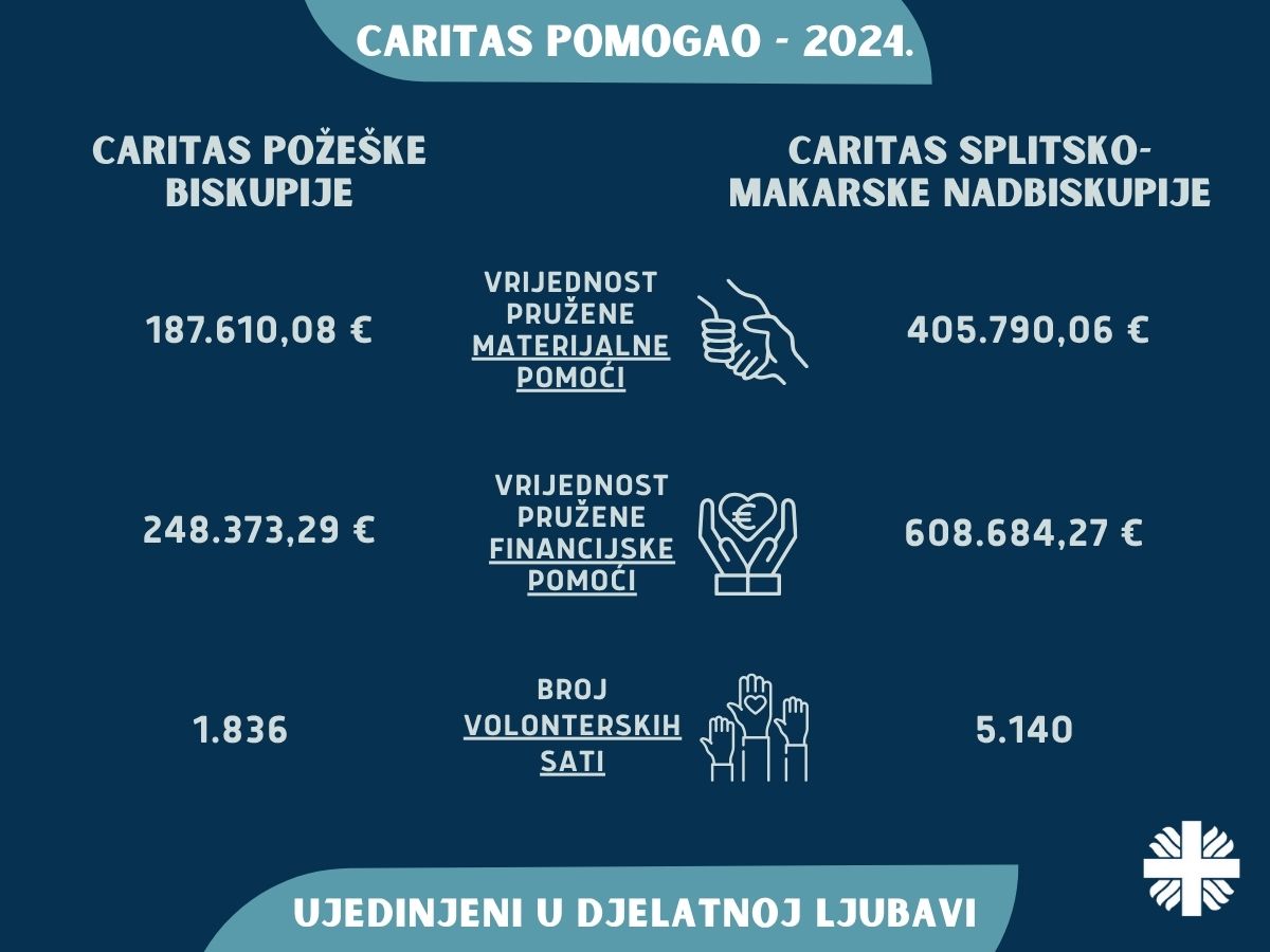 Hrvatski Caritas predstavlja djelovanje (nad)biskupijskih caritasa tijekom 2024. što će Informativna katolička agencija prenijeti u nizu tekstova. U drugom dijelu predstavljen je rad Caritasa Požeške biskupije i Splitsko-makarske nadbiskupije, izvijestio je u ponedjeljak 16. lipnja Hrvatski Caritas.