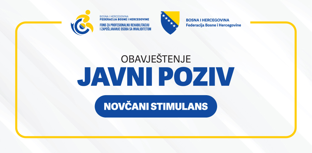 Fond za profesionalnu rehabilitaciju i zapošljavanje osoba sa invaliditetom objavljuje JAVNI POZIV za dodjelu novčanog stimulansa u 2026. godini za novo zapošljavanje osoba sa invaliditetom.