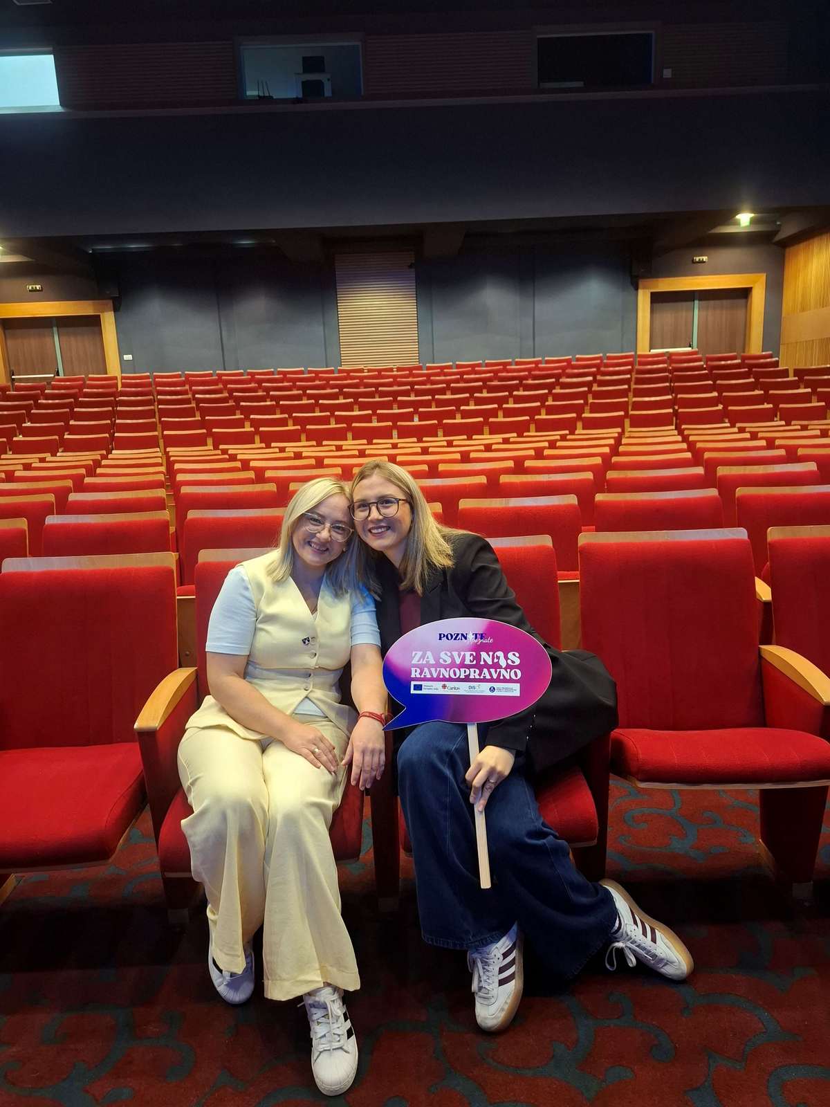 Vanja Krtolina, dramska audiovizualna umjetnica i glumica u Gradskom pozorištu “Semberija”, članica Spasilačke gorske službe, kroz svoju kreativnost i aktivizam uvezala je energiju s Ivanom Josić-Jež, diplomiranom psihologinjom, ikonopiscem i volonterkom koja se zalaže za očuvanje zelenila u gradu. Njihov razgovor je pokazao da umjetnost, posebno gluma, može biti alat koji uključuje, izražava, spaja, ruši jezičke i kulturološke barijere i jača međusobnu potporu u borbi za pristupačnost. Njihova poruka je bila jasna: “Njegujte svoj unutrašnji sjaj – napišite svoju priču i oživite uloge žena s invaliditetom. Usudite se da san postane veliki hit.”