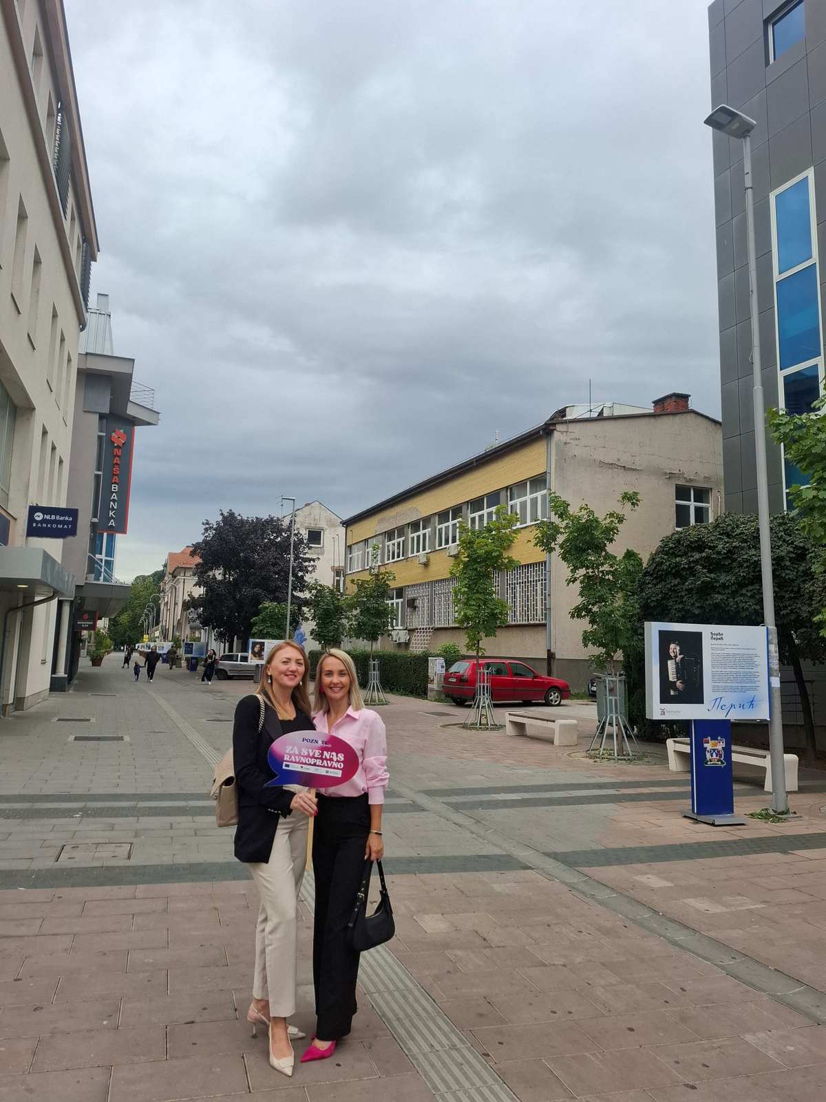 Ivana Stanišić, diplomirani inženjer građevine i zaposlena u službi za projektovanje i razvoj u Vodovodu Bijeljina, kroz svoj politički i humanitarni angažman, podijelila je iskustvo s Danijelom Đurić, tehničarkom drumskog saobraćaja i sekretarkom Udruženja žena oboljelih od karcinoma dojke “GEA”. U konstruktivnom razgovoru dotakle su se političke angažiranosti i važnosti učešća žena s i bez invaliditeta u procesima odlučivanja. Ivana je istakla da su izazovi veliki, ali potpora postoji i može rasti. Danijela je govorila o značaju potpore u teškim životnim situacijama i važnosti zelenih politika u zajednici. Njihova zajednička poruka glasila je: “Aktivirajmo se – promijenimo svijest u svom gradu, pa onda i svijet.”