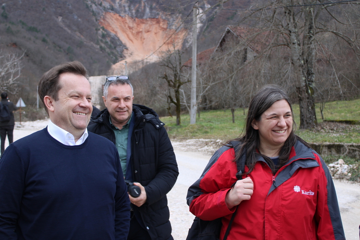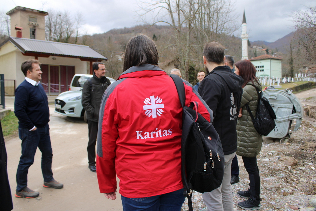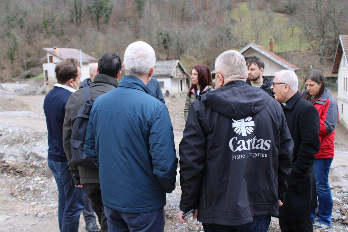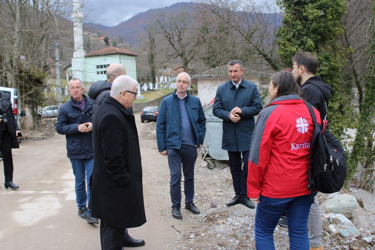 Kako je vrijeme odmicalo, planirana i ostvarivana realizacije uz dodatna razmišljanja i prijedloge nacionalnog Caritasa Slovenije, prije mjesec dana najavili su svoj dolazak uz predstavnike Vlade Slovenije i njihovih ustanova, obilazak terena i u konkretnoj komunikaciji s nacionalnim i s dva nad/biskupijska Caritasa u BiH, sastanke s predstavnicima lokalne vlasti i obilazak prostora koji oni pokrivaju vidjeti što je ostvareno uz njihove konkretne prijedloge pomoći. Dogovoreno je da se ostvari terenska posjeta poplavljenog i stradalog terena u vremenu od ponedjeljka 27. do četvrtka 30. siječnja 2025. godine, uz susret i razgovor s najodgovornijima u Caritasima u BiH na svim razinama. Delegaciju iz Republike Slovenije činili su: nacionalni Caritas Slovenije: generalni tajnik gosp. Peter Tomažič i voditeljica međunarodne pomoći gđa Jana Lampe, zatim gđa Mateja Urbanija iz Ministarstva vanjskih i europskih poslova Republike Slovenije i Uprave za razvojnu suradnju i humanitarnu pomoć, te ravnatelj gosp. Dejan Prešiček i djelatnik gosp. Luka Najdenov iz Centra za međunarodnu suradnju i pomoć, a u Sarajevu se priključio prvi dan priključio zamjenik veleposlanika Republike Slovenije u BiH gosp. dr. sc. Zvone Žigon, a drugi dan gospodarski savjetnik Veleposlanstva gosp. Marko Polajžen. Visoku delegaciju iz Republike Slovenije primio je i cijelo vrijeme pratio ravnatelj Caritasa Bosne i Hercegovine mons. Tomo Knežević zajedno sa suradnicima odgovornim za provedbu projekta pomoći stradalima: koordinator za žurno djelovanje gosp. Miroslav Valenta i voditelj financija gosp. Daniel Eror.